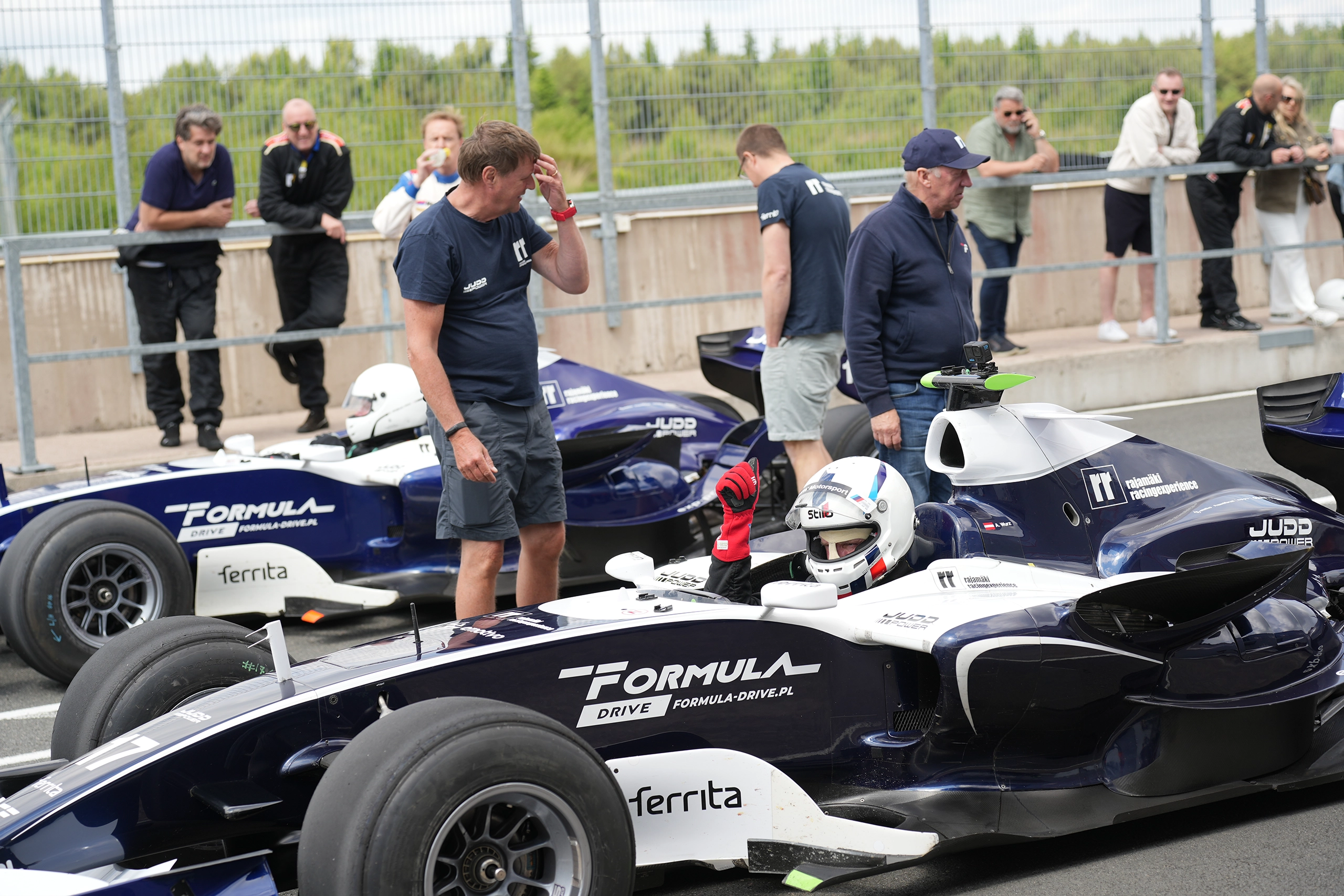 Voorpret is óók pret. Loop meteen warm voor de F1-ervaring van je leven bij aankomst: je wordt verwelkomd met een luxe high-end catering, compleet met een glas bubbels om de spieren te ontspannen en het gevoel van exclusiviteit te benadrukken. Terwijl je geniet van culinaire hoogstandjes, staat ons deskundige team voor je klaar om je te begeleiden door het complete proces. We geven uitgebreide instructies en besteden veel aandacht aan het fysieke deel, zodat je tot in detail bent voorbereid op het bijzondere dat er komen gaat.